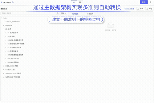 智能准则转换:预置IFRS、PRC、GAAP等准则转换规则库,基于同一业务数据自动生成多准则财务报告,大幅提升编制效率与合规性;