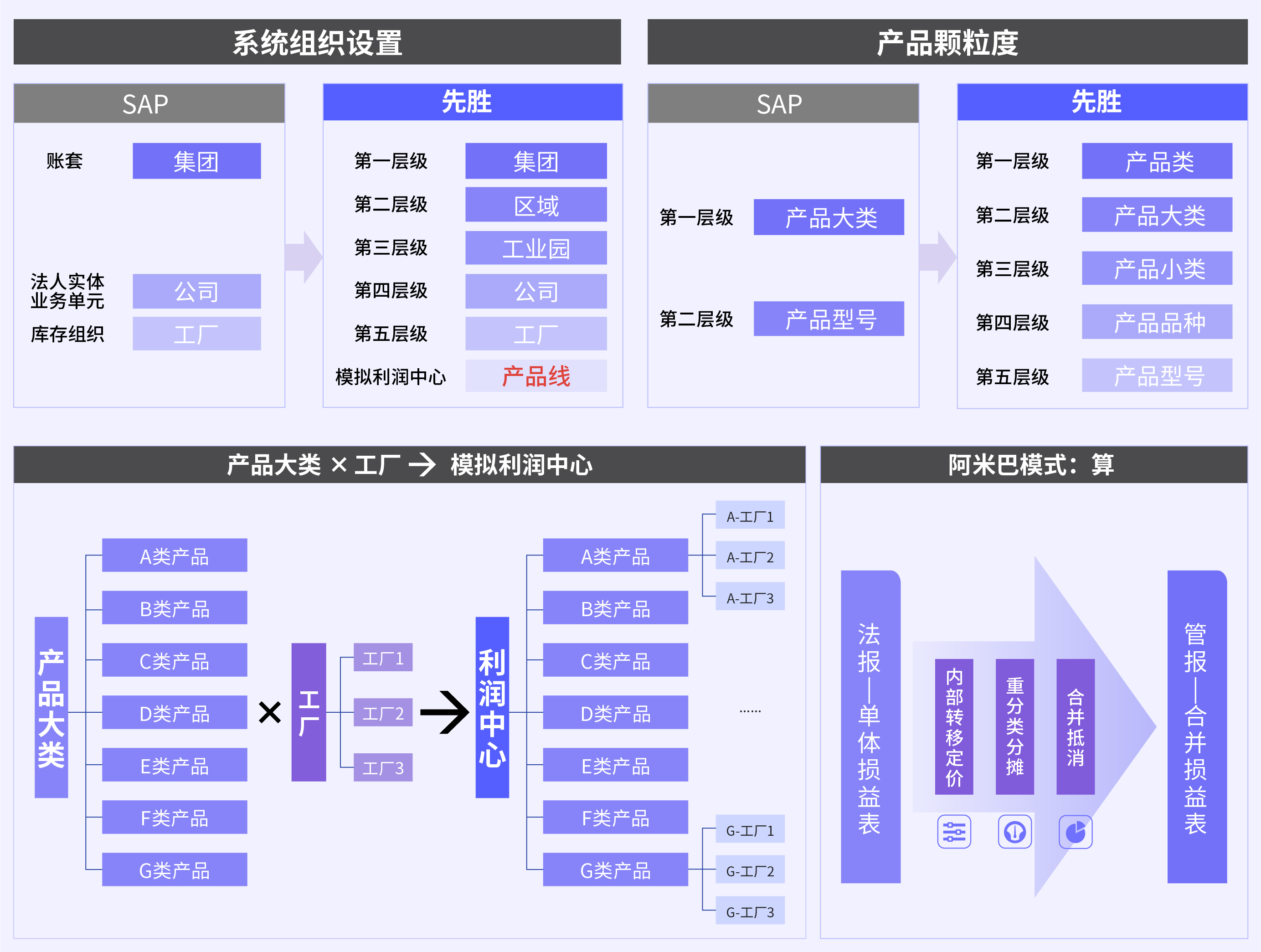 构建全球化矩阵管理架构:"区域管理+产品线运营"双线分析体系,实现数据颗粒度细化至工厂、产品级别,满足集团阿米巴模式下对利润的最小经营单位考核的管理需求;