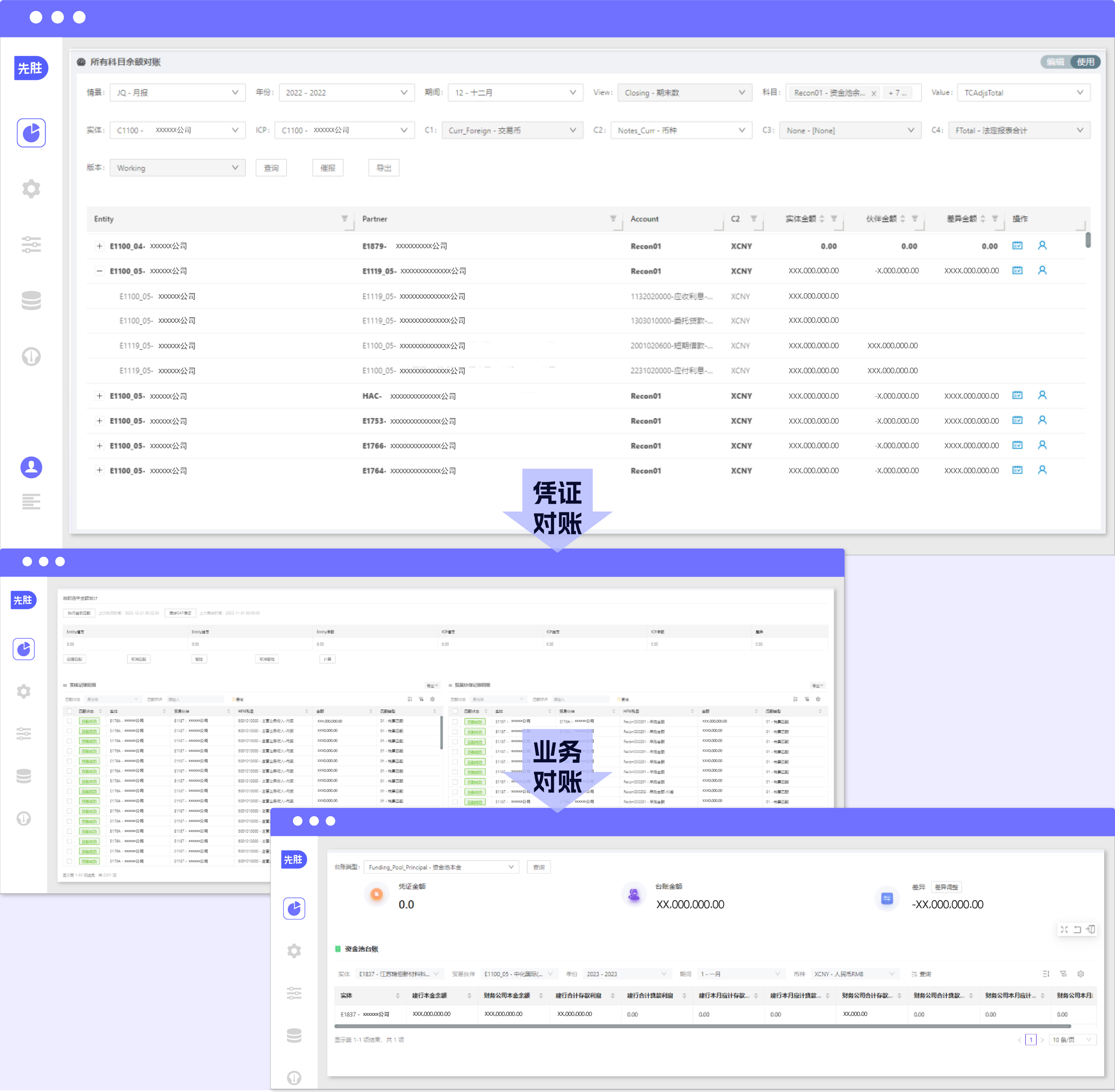 余额-凭证-发票-业务单据四级精细化对账,自动匹配调差,合并自动化率90%+